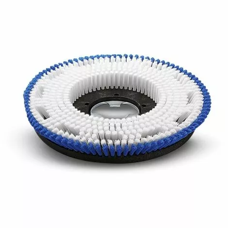 Brosse de shampooing pour moquettes, bleue/blanche.Ø 330 mm de diamètre.Pour le nettoyage intensif des moquettes.Fibres : Polypropylène, épaisseur = 0,36 mm, L = 41 mm.Pour BDS 33/190 C