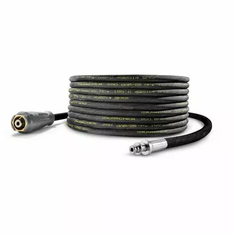 Flexible haute pression 15 m avec raccord AVS breveté sur le pistolet (palier rotatif) et raccord enfichable pour l’enrouleur.