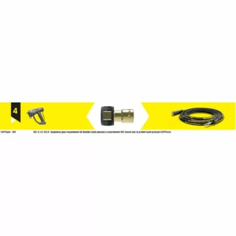 L’adaptateur 4 EASY!Lock – AVS pour le raccordement de flexibles haute pression avec raccord AVS et de poignées-pistolets EASY!Force.