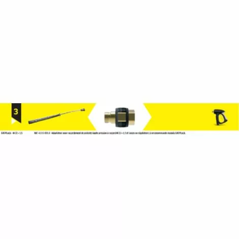 L’adaptateur 3 EASY!Lock pour le raccordement de poignées-pistolets avec raccord M 22 x 1,5 et de lances ou régulateurs Servo Control EASY!Lock.