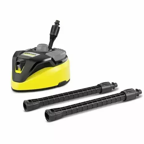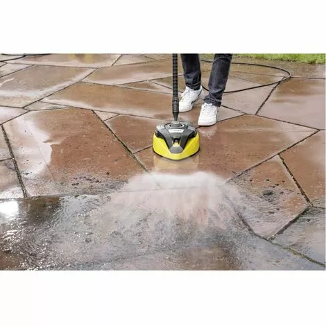 Avec le nettoyant de surface T 7 Plus T-Racer, de grandes surfaces extérieures peuvent ?tre nettoyées efficacement et sans éclaboussures. Le bras rotatif double jet assure l’élimination de la saleté sur une grande surface, ce qui économise environ 50 % du temps de travail par rapport au nettoyage avec une lance de pulvérisation. La buse Power supplémentaire permet également un nettoyage efficace des coins et des bords. Et grâce la buse de rinçage intégrée, la saleté détachée peut ?tre simplement rincée de la surface nettoyée, ce qui évite les travaux fastidieux. En ajustant la distance entre la buse et l’objet nettoyer, les surfaces dures telles que la pierre et le béton ainsi que les surfaces plus sensibles telles que le bois peuvent ?tre nettoyées. L’effet dit aéroglisseur rend le T-Racer particuli?rement facile man?uvrer. Les différentes fonctions peuvent ?tre commandées de mani?re pratique en appuyant sur les boutons au pied. M?me les surfaces verticales telles que les portes de garage peuvent ?tre nettoyées en un rien de temps grâce la poignée pratique. Convient aux nettoyeurs haute pression des classes K 4 K 7.