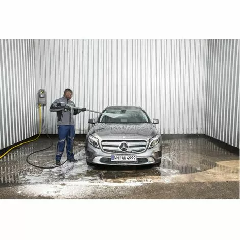 Kärcher Nettoyeur haute pression HD 6/15 M St / 3100 W La nouvelle technologie pompe axiale à 3 pistons avec piston en acier inoxydable durci est au cœur de notre puissante unité moteur / pompe HD 6/15 M St avec moteur à courant alternatif. Il permet d’augmenter jusqu’à 20 pour cent l’efficacité énergétique et la performance de nettoyage, garantit une longue durée de vie et assure sans effort pour une pression de 150 bar. Pour protéger la pompe, un filtre fine eau, les particules de manière fiable la saleté de l’eau est éliminée, installée. Le limiteur de pression automatique protège la pompe et d’autres composants à haute pression des charges potentielles en stand-by. En outre, l’unité de milieu de gamme est extrêmement service structuré et si convivial qui peut être facilement atteint tous les composants clés. Que ce soit en mode vertical ou horizontal: Pour un simple montage vertical sur des parois (ou dispositif monté horizontalement) est un idéal de montage 3 points sur le panneau arrière.