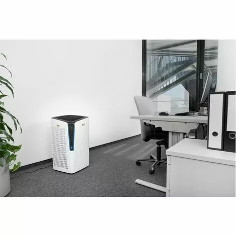 • Mode Auto </ B> La poussière, le pollen, les odeurs, les gaz chimiques: La qualité de l’air dans de nombreux lieux de travail ne sont pas toujours optimale. Remède notre purificateur d’air professionnel AF 100. Le puissant moteur ne nécessite que quelques minutes pour fournir jusqu’à 100 m² de grandes chambres avec air frais et propre. Le dispositif est mobile et peut facilement se déplacer en raison de rouleaux robustes et sont introduits dans une autre pièce. En fonction de l’application principale, vous avez la possibilité de votre purificateur d’air pour être équipé de différents éléments filtrants. Que ce soit avec notre filtre tous azimuts, qui fournit un spectre très large d’activité et répond ainsi à toutes les exigences. Ou sélectionner l’un des quatre filtres qui sont spécifiquement conçus pour l’élimination ciblée des bactéries, des odeurs, des allergènes et des composés organiques volatils. Pour la surveillance continue de l’air et le contrôle du mode automatique, un capteur laser de précision est intégré. Qualité de l’air est toujours indiquée par un schéma de couleurs claires, alors que la matière particulaire courant dans l’air ambiant et la durée de fonctionnement du filtre restant peut être lu à tout moment via un écran.