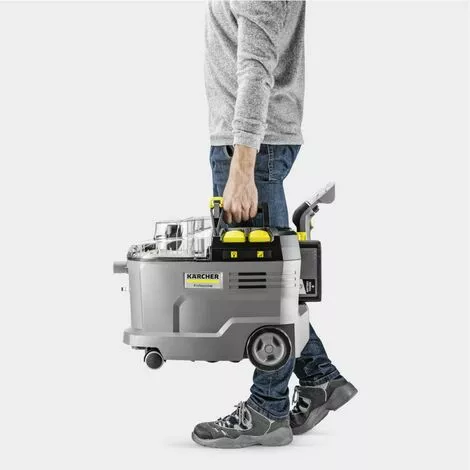 Worldwide, robuste et sans fil flexible: Notre nettoyeur de lavage de voiture de batterie Puzzi 9/1 BP. En tant que seul dispositif d’extraction de pulvérisation à batterie professionnelle sur le marché, ce puzzi excité avec des réalisations exceptionnelles et une liberté de mouvement maximale dans le nettoyage des policiers et du textile. Surfaces, par exemple, dans l’hôtellerie et dans l’industrie du restaurant, par exemple dans l’hôtel et le restaurant, l’intérieur du véhicule ou le nettoyage des bâtiments. Ce puzzi est très silencieux, de sorte qu’il puisse être utilisé dans les transports en commun, et grâce à la poignée de transport ergonomique peut être facilement transportée avec une seule main. Pour de meilleurs résultats en profondeur de nettoyage, la solution de nettoyage est pulvérisée au fond des fibres textiles sous pression et aspirée avec la saleté sollée. Buse de rembourrage extra courte, tuyau d’aspiration de pulvérisation, conteneurs 2 en 1 pour eau fraîche et sale, stockage d’accessoires intégré et bien plus encore. Veuillez noter que lors de la commande de cette version de périphérique de la puissante batterie Kärcher Power + -Ku et le chargeur rapide associé doivent être commandés séparément.