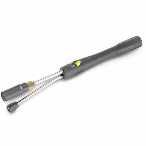 Lance double avec canon à mousse et permutation sur jet HP pour le rinçage à l’eau claire.Les jeux de buses pour les différentes gammes d’appareils doivent être commandés séparément.