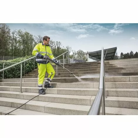 Le nettoyeur haute pression à eau froide HD 5/15 CX+ est un appareil tout-terrain qui se caractérise par sa grande mobilité, ses dimensions compactes et son efficacité. Pratique et agréable à utiliser, il est équipé d’une poignée de transport, d’un guidon rétractable et d’une sangle de maintien pour câble. Avec sa pompe, son arrivée d’eau et la sortie haute pression en laiton, il dispose d’une grande résistance aux chocs et à la corrosion, ainsi qu’une plus longue durée de vie. La pompe haute pression et le moteur sont protégés contre les dommages et les souillures par un habillage intégral antichoc. Grâce à la poignée-pistolet EASY!Force, la force de recul est réduite à zéro pour un nettoyage confortable et sans effort. Les risques de troubles musculo-squelettiques sont considérablement diminués. La connexion EASY!Lock permet de connecter les accessoires plus rapidement en garantissantfiabilité et sécurité. L’HD 5/15 CX+ convient parfaitement aux milieux agricoles, artisanaux et aux collectivités.
